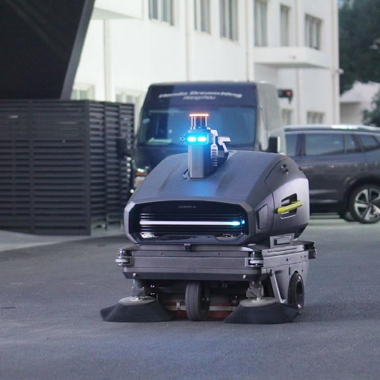 描述:大型园区扫地机器人,主要应用在产业园区、工厂园区、室外广场、公园道路等户外场景的智能扫地工作,功能特点包括: